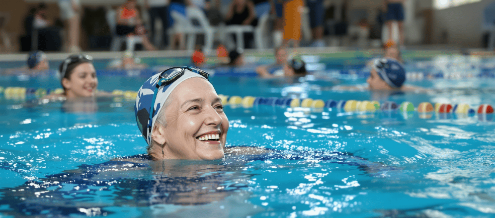 El contacto con el agua tiene un efecto calmante. Nadar libera endorfinas, reduce ansiedad y favorece un estado mental más equilibrado. Muchos adultos consideran la piscina como su “espacio de desconexión”.